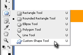 Držite z miško na orodju Rounded Rectangle Tool (bližnjica je tipka U) toliko časa, dokler se ne prikažejo ostala orodja. |