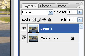 Nastavite dupliciranemu layerju Opacity na 75%.