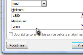 ![]() V novem okno dololčite polju Dovoli preko izbirnika na Celo število in Podatki na med. |