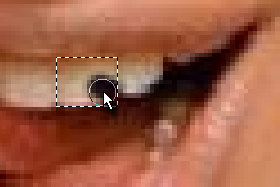 Potem pa z izbranim orodjem označite zob, ki ga boste "izpulili". |