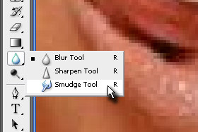 Držite z miško na orodju Blur Tool (bližnjica je tipka R) toliko časa, dokler se ne prikažejo ostala orodja. |