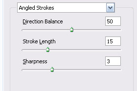 V novem oknu določite Direction Balance 50, Stroke Lenght 15 in Sharpness 3. Kliknite na gumb OK. |