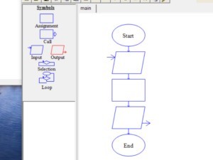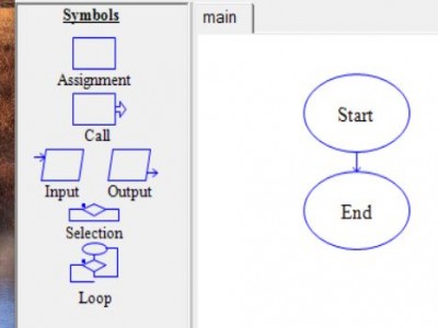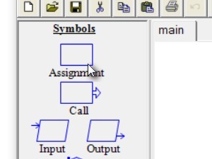 ![]() V levem stolpcu imamo simbole oz. ukazi, ki jih s premiki (jih povlečemo) vstavimo v program. Desno od njih je START in END. To sta najpomembnejša dela programa. START pomeni začetek in predstavlja začetek programa. END pa pomeni konec in predstavlja konec programa. |