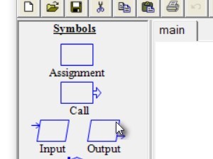![]() Simbol oz. ukaz Output je zelo podoben. Njega uporabimo, kadar hočemo besedilo izpisati. Tudi tu besedilo vpišemo med dvojne narekovaje. Razen spremenljivke, ki se pišejo brez narekovajev. Če besedila in spremenljivke združujemo je obvezno potrebno med njih postaviti znak +, saj s tem nakažemo združevanje. Upoštevati je tudi potrebno, da v programu ne pišemo črk š, č, ž, đ,... saj te niso podprte. |