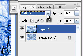 Kliknite zgoraj na Edit, Transform in izberite Flip Vertical. Določite layerju senčenje na Multiply (glej sliko). |