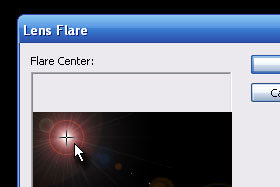 V novem oknu Flare Center z miško določite zgornji levi rob za odsev, spodaj pa pustite privzete nastavitve. Kliknite na gumb OK. |