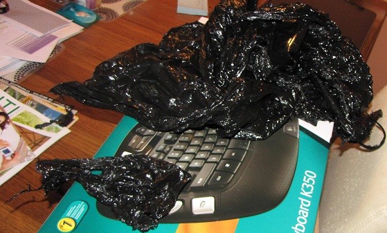 Pri prejeti pošiljki me je bolj motil sam ovitek oz. zaščita, v katerem je bila škatla za tipkovnico. Zavita je bila v nek poceni črn polivinil in še rahlo oblepljena s trakovi. V takih ovitkih se namreč največkrat tihotapi droga. Po novem pa očitno tudi računalniška oprema.