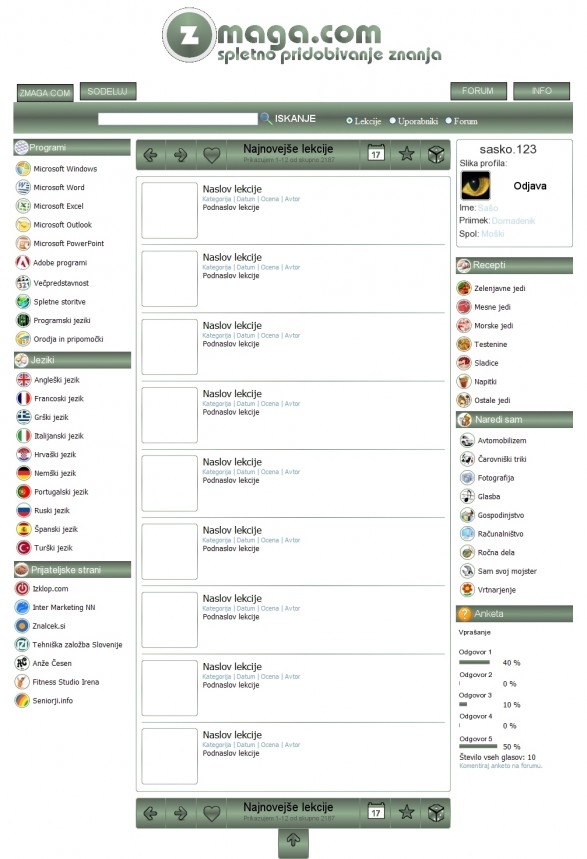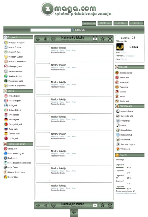 Tudi jaz sem izdelal design za Zmaga.com ki sicer temelji na trenutni strani vseeno pa je drugačen.