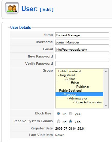 Administratorji skrbijo za delovanje celotne strani in lahko upravljajo praktično z vsem, kar je vidno na strani (od tehnike do vsebine).