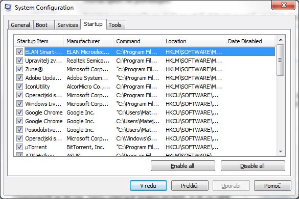 Zdaj teh programov je kar nekaj, vendar jih nemorem onemogočit, kliknem gor pa se mi ne pojavi možnost da bi onemogočil, verjetno ker so toshibini programi? mam pa toshiba prenosnik. Še mogoče kaka druga rešitev?