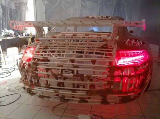 Tole sem že videl. Bi pa dosti bolj realno izpadlo, če bi ga obdelal za maskirnim trakom in potem čez avtokit, ga pobrusil in pobarval...