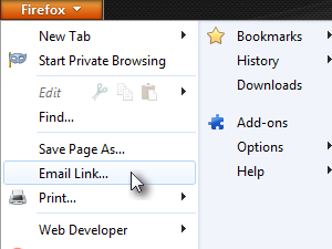 Drugače pa je ta možnost še vedno dostopna, če klikneš na gumb Firefox, in imaš tam možnost pošiljanja strani.