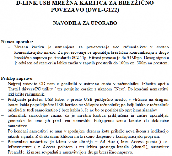 Imam prenosnik IBM(star) in zraven mrežno kartico usb,oz usb link,imenuje se D-Link,točna oznaka pa je DWL-G122. OS je XP sp3.