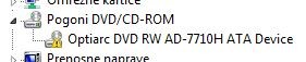 Zdravo, bi mi lahko dobil driverje za Optiarc? Imam problem z dvd rw. V sistemu sem našel pod klicajem ta pogon. Ko sem dal cd noter, mi je samo zagnal, odprl pa ni nič in tudi pod Moj računalnik ni okna za dvd pogon.Prilagam sliko dejanskega stanja
