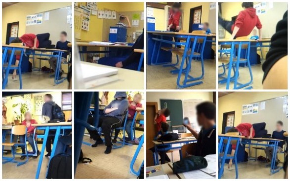 Nevem, kako učitelj sploh pusti to...v naši šoli se to še ni zgodilo.