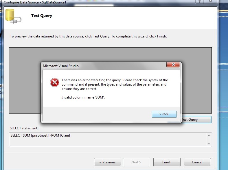 Mogoče veš kako v Visual Studiu? Ne gre ne COUNT in ne SUM.