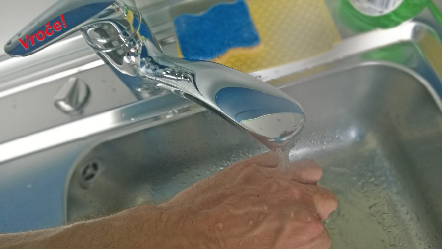 2. Roko zato postavim pod vrelo vodo in počakam toliko časa, dokler me vrela voda ne opeče, nakar roko seveda umaknem. Pretiravati ni potrebno!