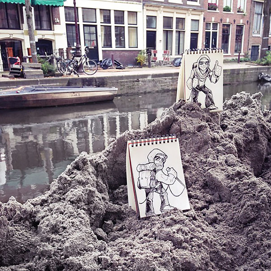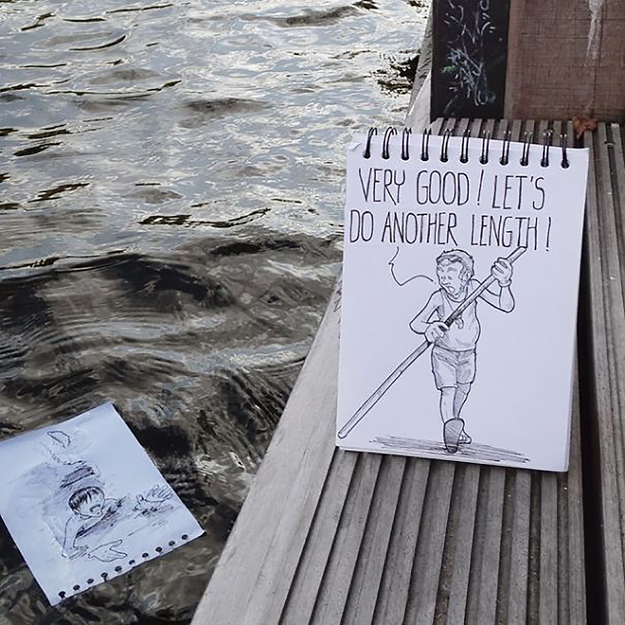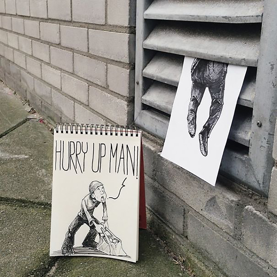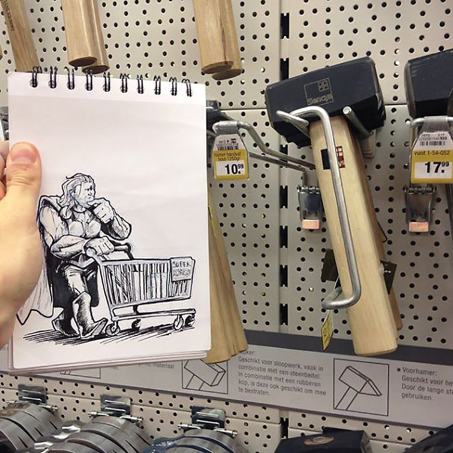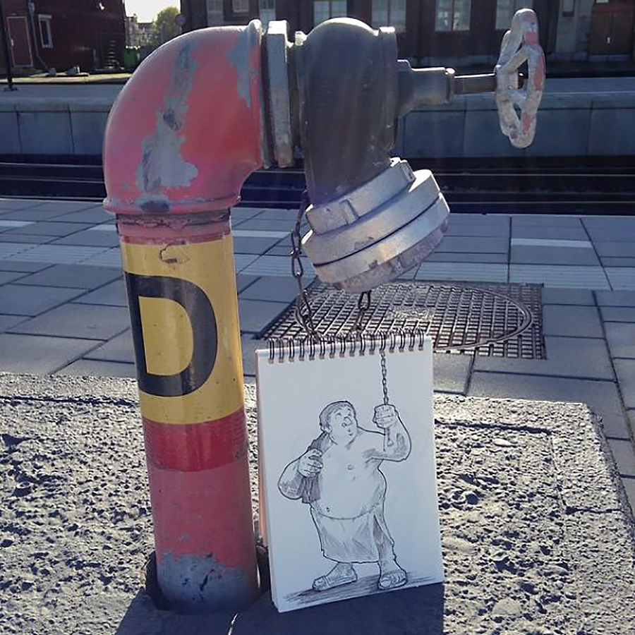 Avtor skic, ki jih lahko pogledate spodaj, je priznal, da mu je bilo dolgčas in je s pomočjo svinčnika in zvezka ustvaril komične risbe, ki so prilagojene tamkajšnji okolici.