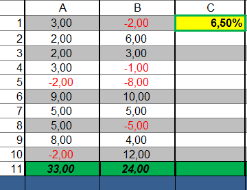 kot je že v naslovu napisano, me zanima, kako naj v Excelu odštejem določen odstotek le pozitivnim številom v stolpcu, negativna pa da ostanejo ista in vse skupaj seštejem. Že vprašanje je težko zastaviti, rajši ponazorim s primerom: