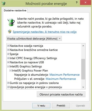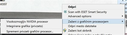 Ali ni tako, da lahko v upravitelju naprav izklopiš integrirno grafično kartico, seveda moraš pred tem za prikaz zaslona izbrati ločeno grafično.