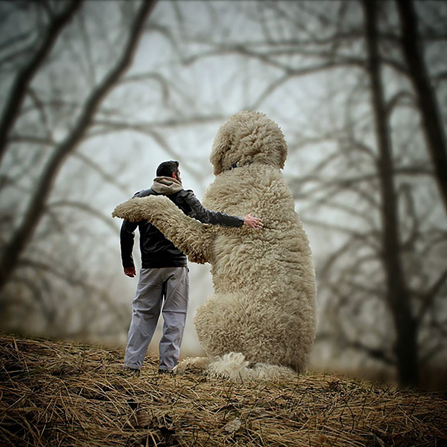 Fotograf s svojim povečanim psom