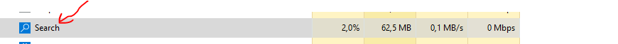 V taskmanagerju moraš klikniti zavihek procesi, potem pa desni klik na proces "search/iskanje" in končaj proces.