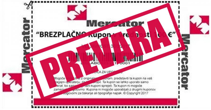 Ne nasedajte brezplačnim kuponom od Mercatorja! Ali res mislite, da bi vam nekdo dal kupon za 100 €, samo zato, ker boste delili povezavo na Facebook-u?