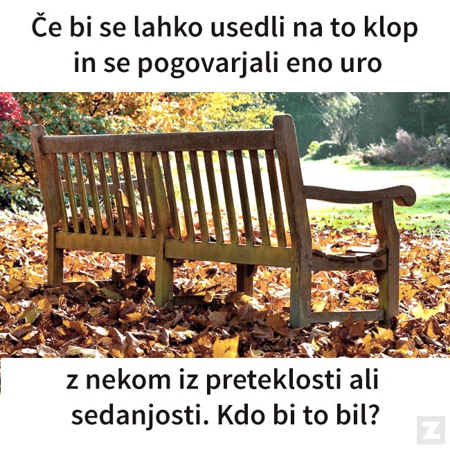 Če bi se lahko usedli na to klop in se pogovarjali eno uro z nekom iz preteklosti ali
