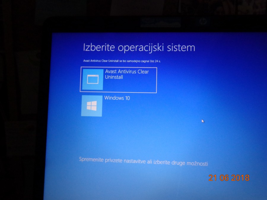 Avast se mi pojavi kot izbira za operacijski sistem in če ga pravočasno ročno ne premaknem na Windows 10 se samodejno prestavi na varen način računalnika.