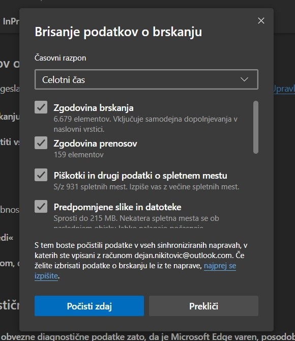 Si počistil prav vse? Saj se pojavi v Edge ne?