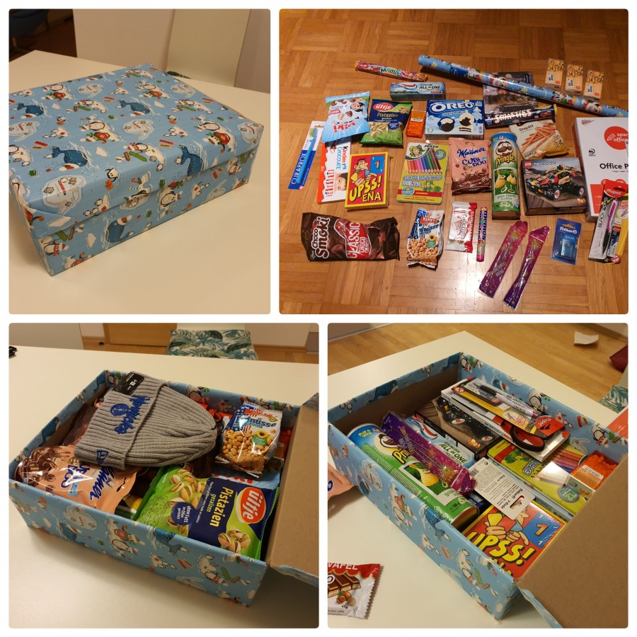 Tukaj je prikaz darila, kaj sem sam pripravil za 11 letnika in želel sem, da je škatla polna malih dobrot in uporabnih stvari. Upam, da mu bomo prav.