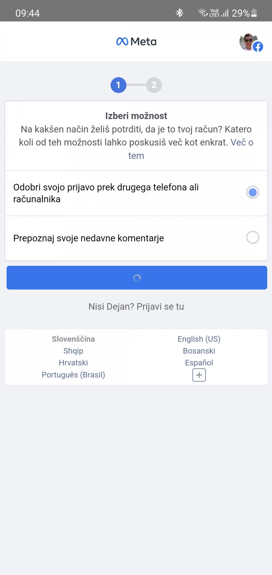 če se bo mogoče komu zgodilo, da prijava v Facebook ne bo več možna in vam bo spletna stran zahtevala dodatno preverjanje, ki pa ni delujoče, potem svetujem naslednje: