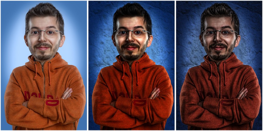 Jaz sem to naredil tako, da sem ustvaril nov layer z radial gradientom (svetlo oranžna -> temno rjavo-siva) z izvorom na viru svetlobe, ki je opisan zgoraj. Layerju sem potem mode spremenil na Soft Light (lahko tudi Overlay - odvisno od slike) in mu po potrebi zmanjšal Opacity.