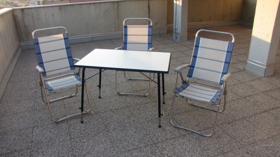 Prodam komplet, ki vključuje tri stole in mizo. Elementi so ohranjeni dobro, tu in tam se najde kakšna praska na kovinskih delih.