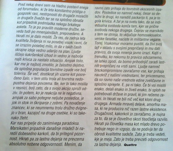 Zelo dobro napisan kratek članek o današnji mladini (in odgovornosti), ki sem ga našel v reviji Joker (avtor: Quattro).