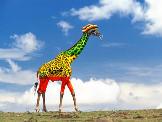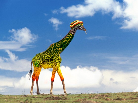 Meni se zdi ,da je žirafa že dovolj ledena tako ,da se ne prekriva preveč.