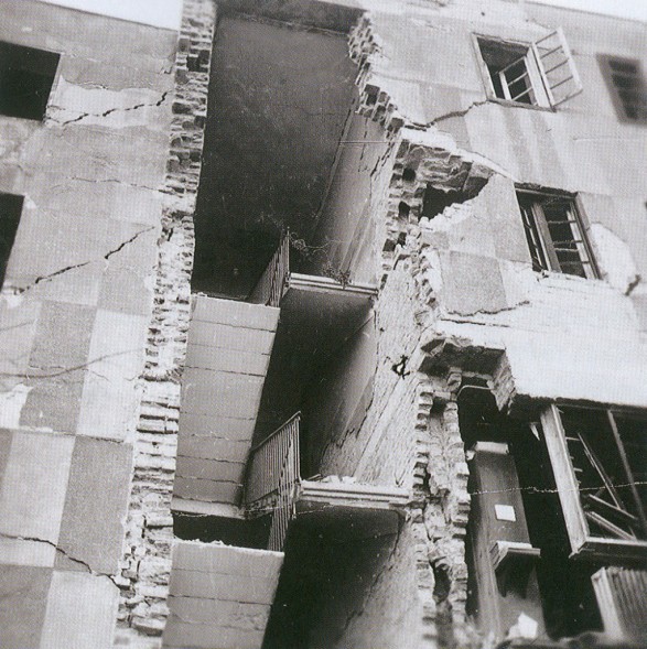 Šahovnica po bombnem napadu zavezniških sil marca 1945. Zadnjo stran so pri rekonstrukciji nekoliko spremenili.