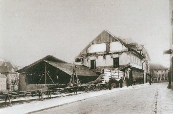 Ljubljanski potres 1895. Wolfova ulica, pogled proti Kongresnemu trgu - v ozadju stari Deželni dvorec.