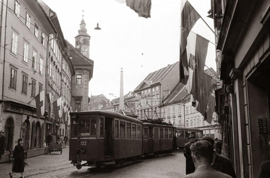 Tramvaj na Mestnem trgu v Ljubljani leta 1958.