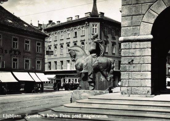 Spomenik kralja Petra pred magistratom. Kip Petru Karađorđeviču so slavnostno odkrili 6. septembra 1931.