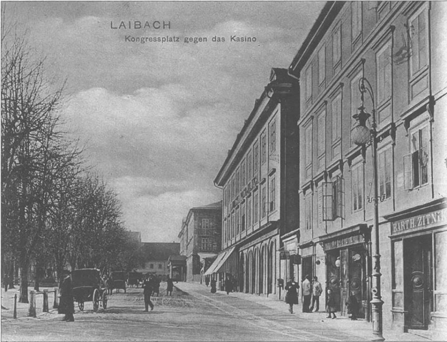 Kongresni trg leta 1912. Pogled iz Kavarne Zvezda proti Kazini.