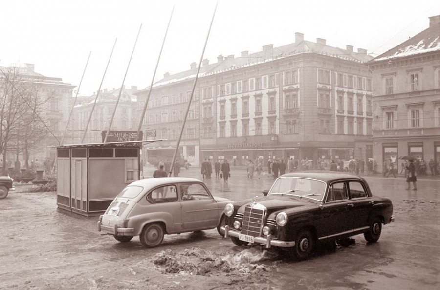 Križišče med kavarno Evropa in Metalko leta 1961.