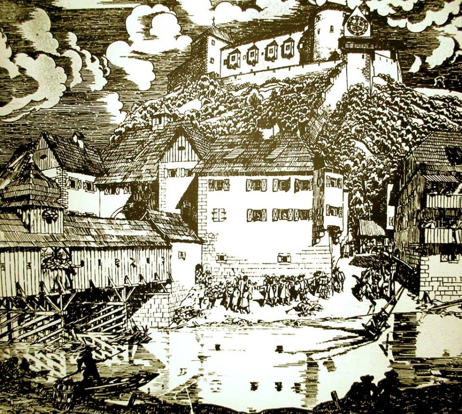 Hotel Slon, ki so ga leta 1937 nadomestili z današnjim. Fotografija je iz leta 1931.