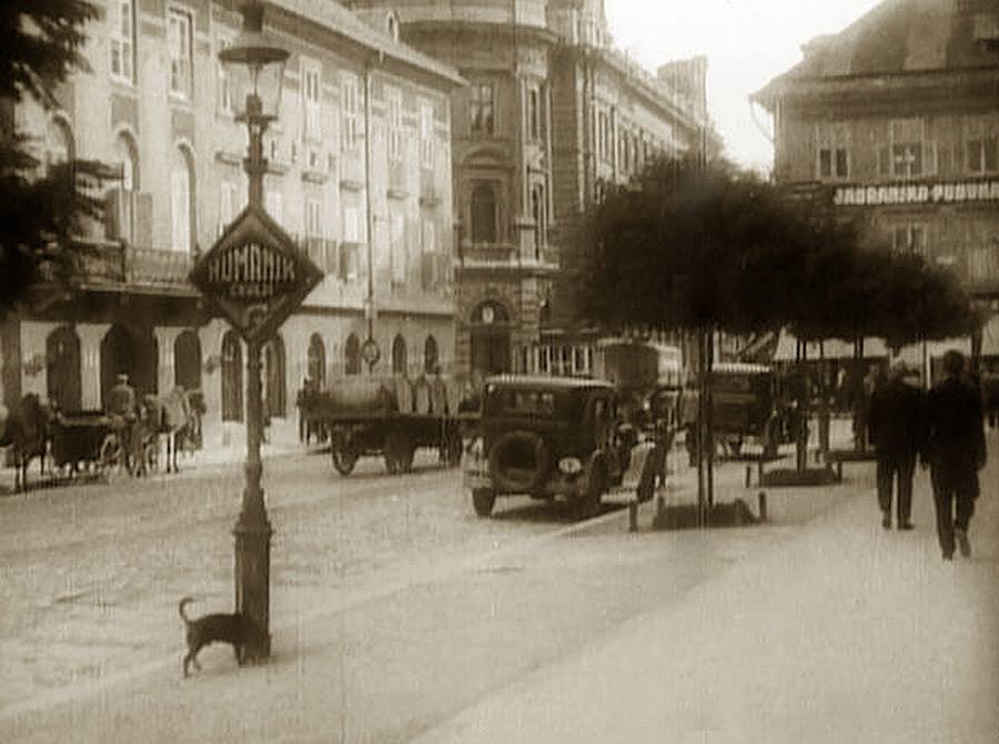 Prešernov trg v zasneženem jutru. Ljubljana, 10. Februar 1947, foto: Marjan Pfeifer. Fotografijo hrani Muzej novejše zgodovine Slovenije v zbirki Foto Slovenija.