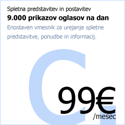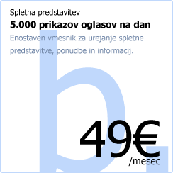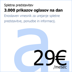 Predstavite se na največjem spletnem mestu za pridobivanje znanja v Sloveniji, ki doseže tudi več kot 125.000 obiskov in 550.000 prikazov mesečno. Za samo 29 evrov mesečno boste dobili pravo spletno predstavitev in kar 30.000 prikazov oglasov!